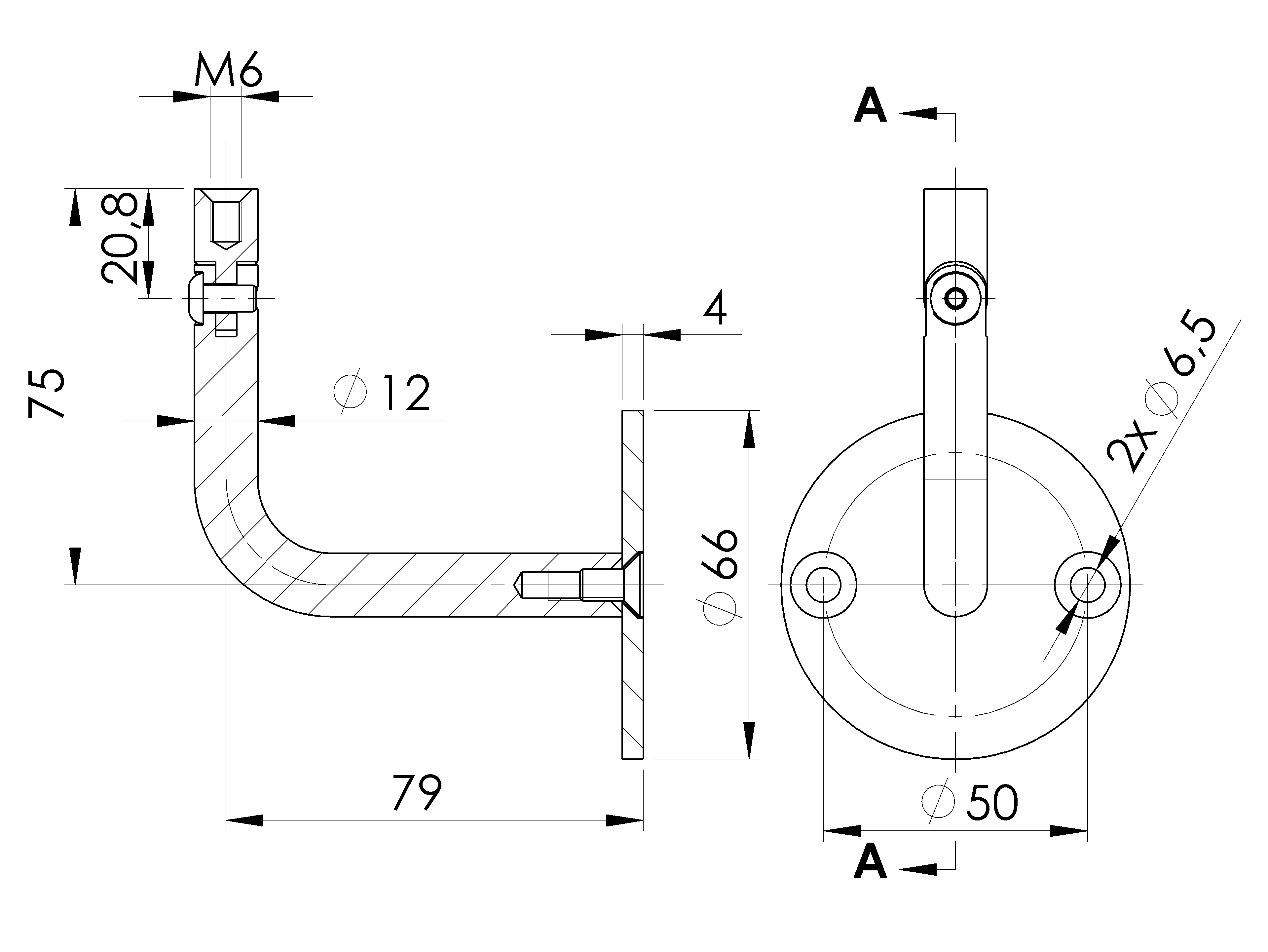 1 ksMateriálNerez AISI 304Povrchová úpravaNaturalL14Držiak madla - prstenec A6/42-55-35-B