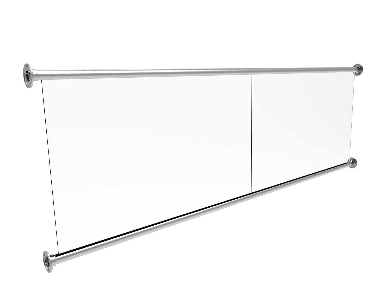 Sklenené zábradlie pre svojpomocnú montáž bez potreby zvárania. Materiály sú dodávané v štandardných dĺžkach, ktoré sú potrebné prispôsobiť reálnej stavebnej situácii. Montáž madla si vyžaduje navŕtanie závitov. Set neobsahuje kotviace závitové tyče a lepidlo.