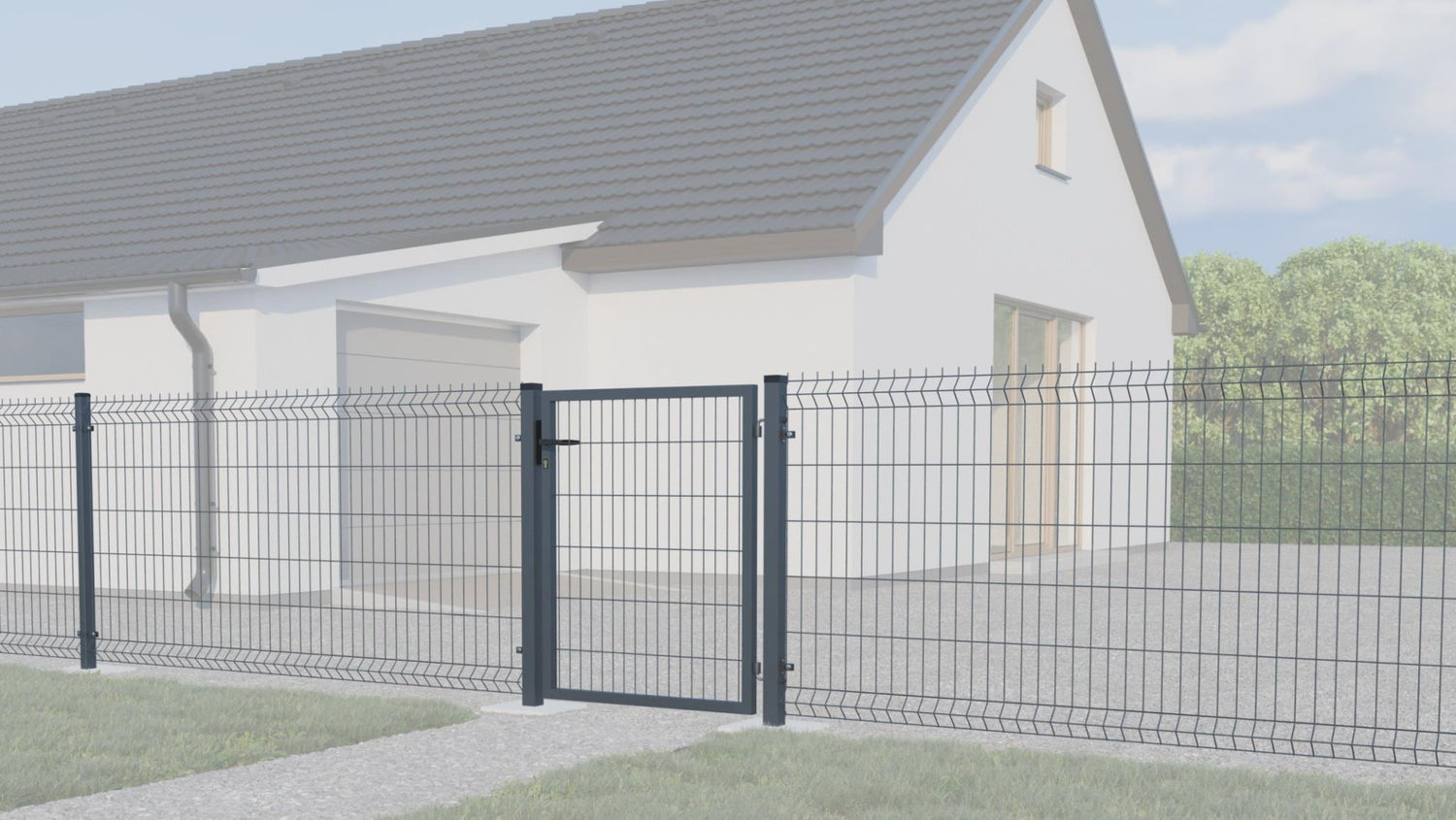 Výplň bránky zváraná sieť. Rozmer oka 200x50mm. Priemer drôtu 4mm. Profil stĺpikov 60x60x2mm.Výška stĺpikov 1700mm.Profil rámu 40x40x1,5mm.Povrchová úprava: zinok + RAL 7016 antracit.Súčasťou balenia je aj zámkova časť a kľučka.