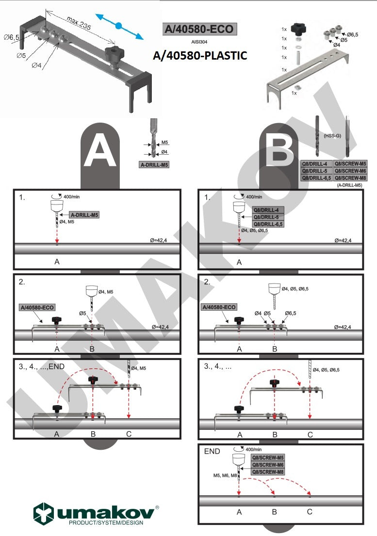 Prípravok AISI304/PVC, D42,4x2mm, 40x40x2mm