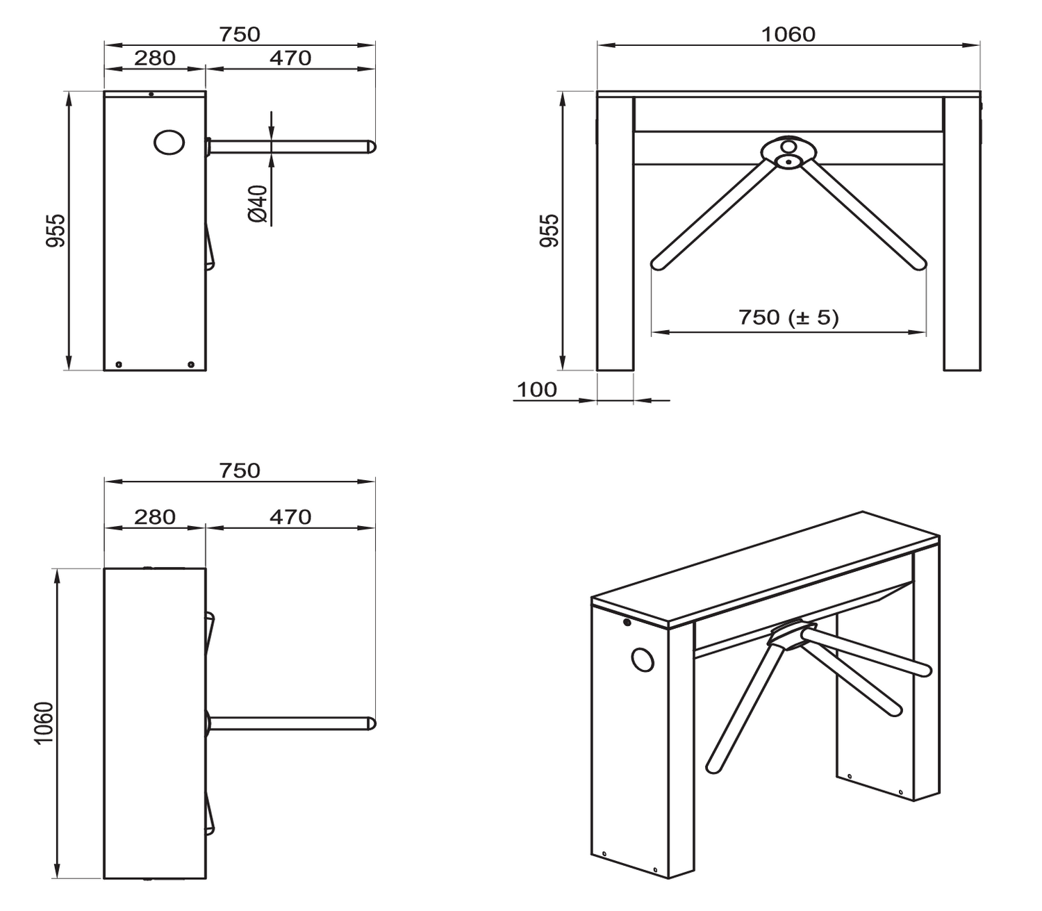 - Kapacita prechodu: Približne 25-46 osôb za minútu pre jednostranný turniket (dvojnásobok pre obojstranný)