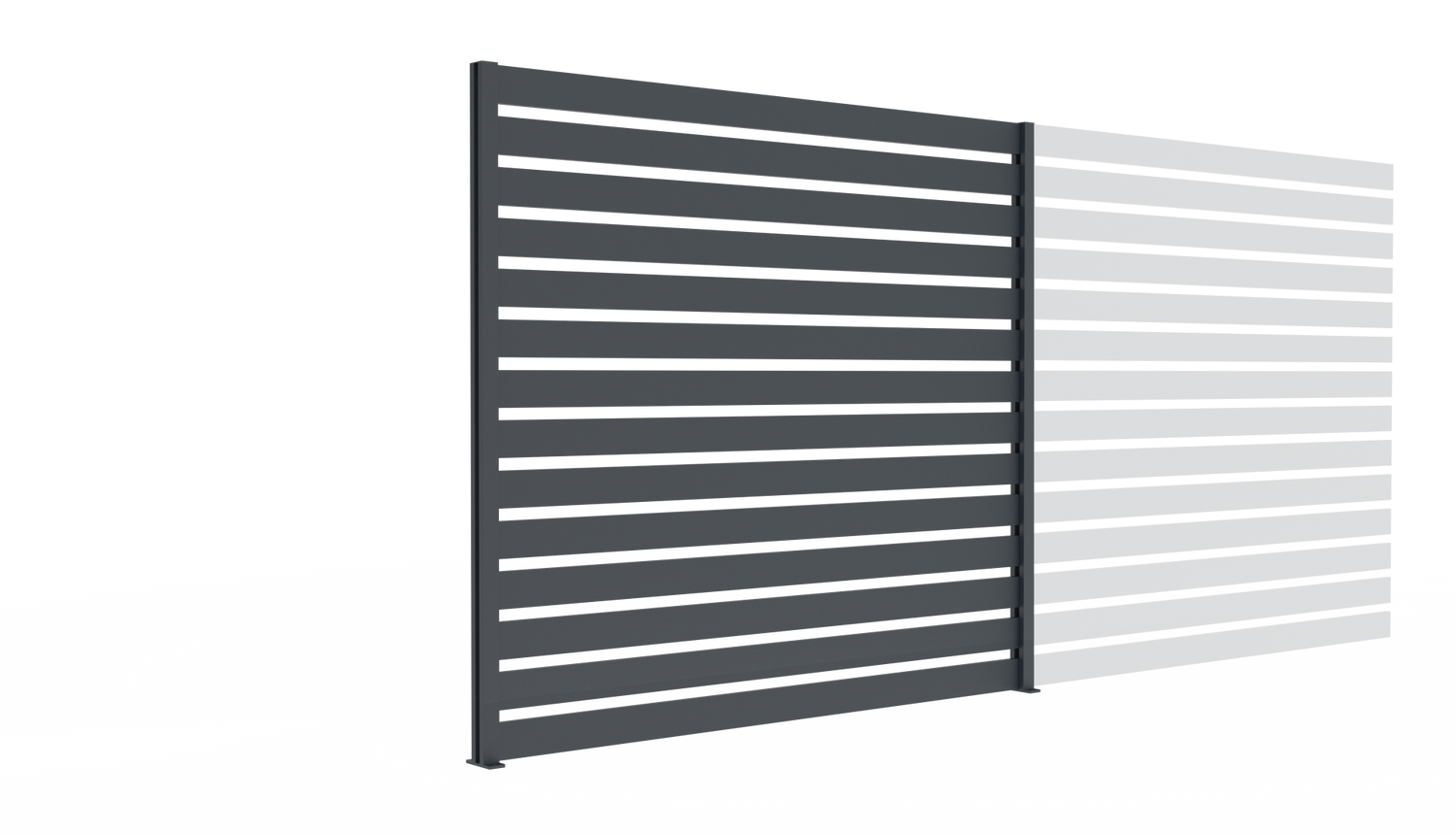 Sestava o výšce 1850 mm a šířce 2000 mm se skládá z hliníkových lamel 20x100 mm a sloupku PRO70x70. Tato moderní konstrukce nabízí rovnováhu mezi soukromím a otevřeností, umožňuje průchod světla a vzduchu, zatímco sestava si zachovává pocit bezpečí a elegance. Ideální řešení pro exteriér domů, zahrad nebo komerčních prostor.