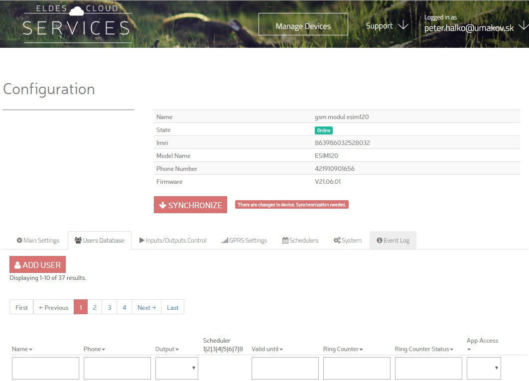 - Databáze uživatelů: Možnost uložit až 500 uživatelů pro ovládání pomocí prezvonění nebo SMS příkazů.