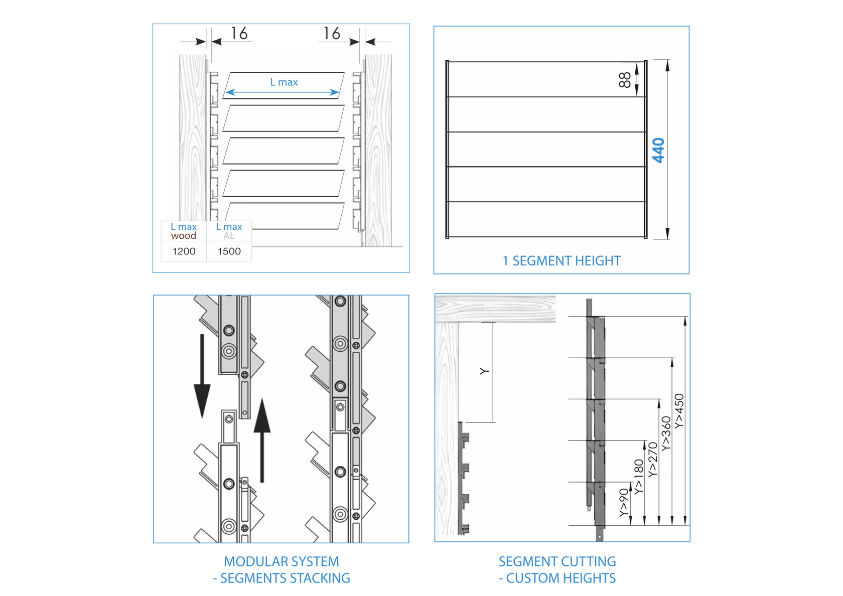 Maximální délka hliníkové lamely: dle požadavku, běžně do 2400 mm