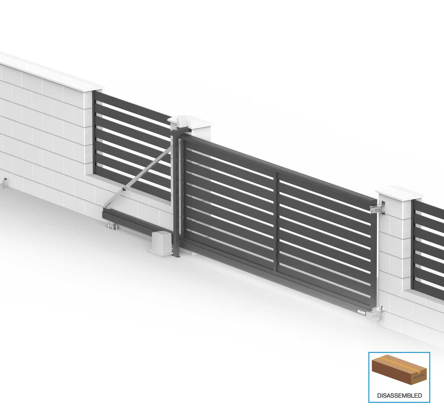 Samonosná posuvná brána se dodává jako montážní set v demontovaném stavu. Je navržena tak, aby její montáž byla rychlá a jednoduchá, bez potřeby svařování. Seznam komponentů, které se nacházejí v setu, najdete v sekci Díly setu. Set neobsahuje kotvící materiál. Přesně navržený montážní systém zajišťuje, že brána bude pevná a stabilní, přičemž si zachová atraktivní vzhled.