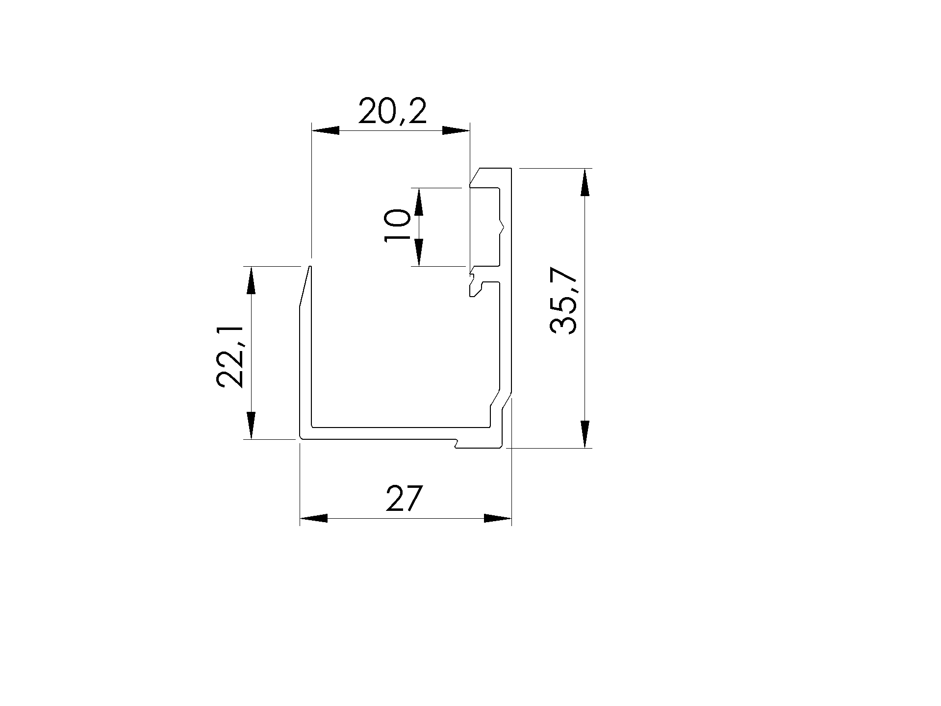 Bottom cover strip for AL profile, ELOX
