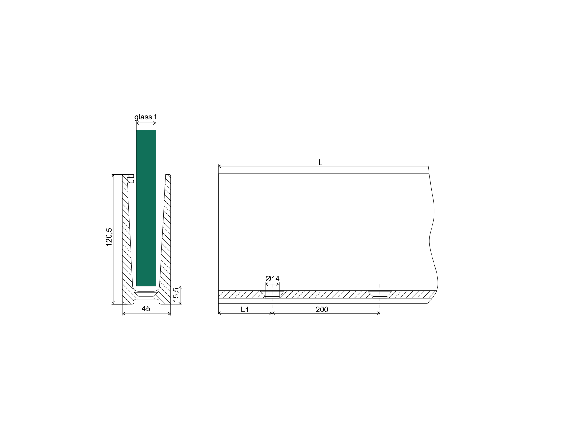 Top mount - glass AL/0004-ECO-2500-S-E