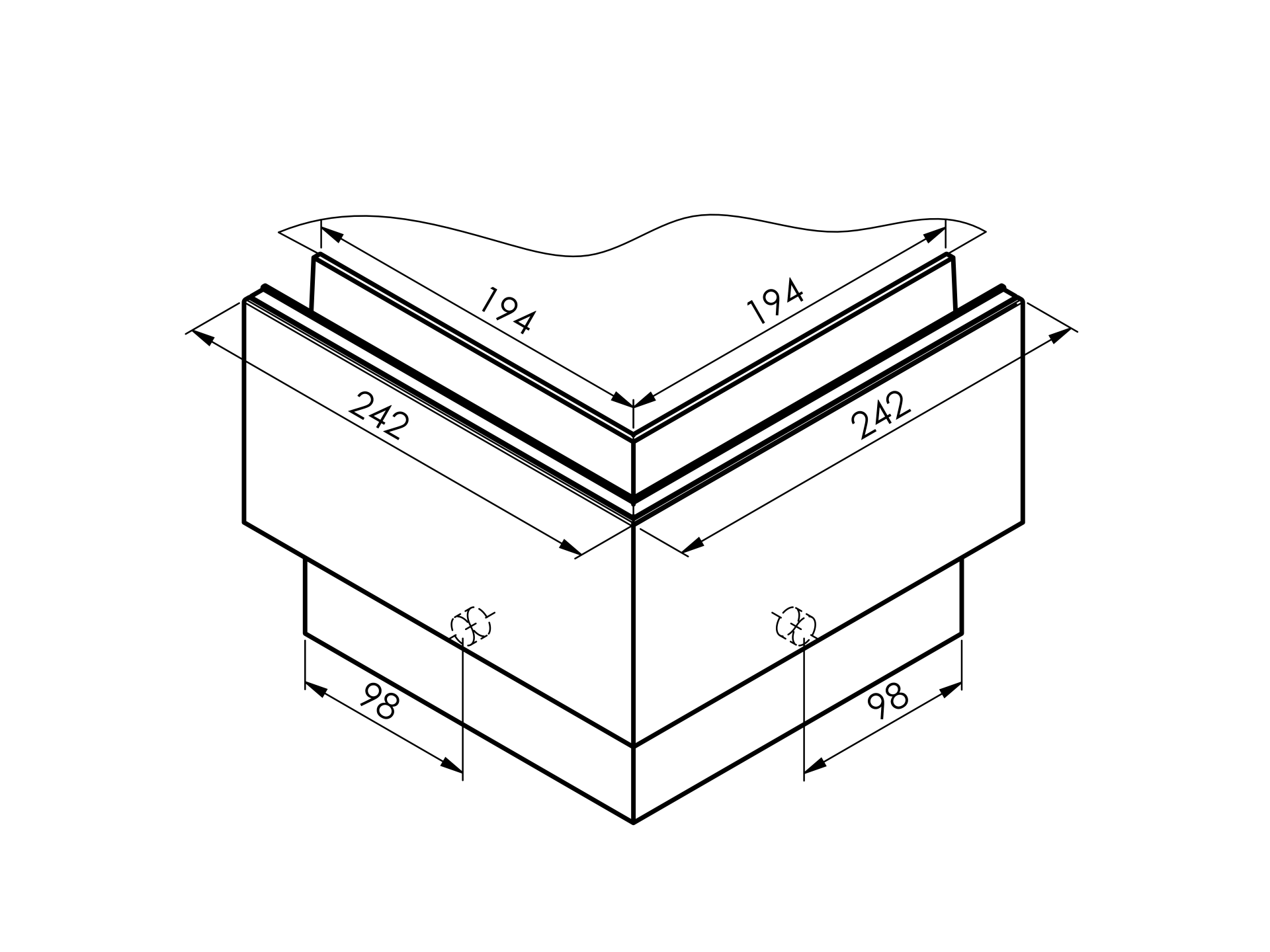 AL. profile, top mount 90° IN corner AL/ELOX/Sati AL/0004-ECO-S-E-90-OUT