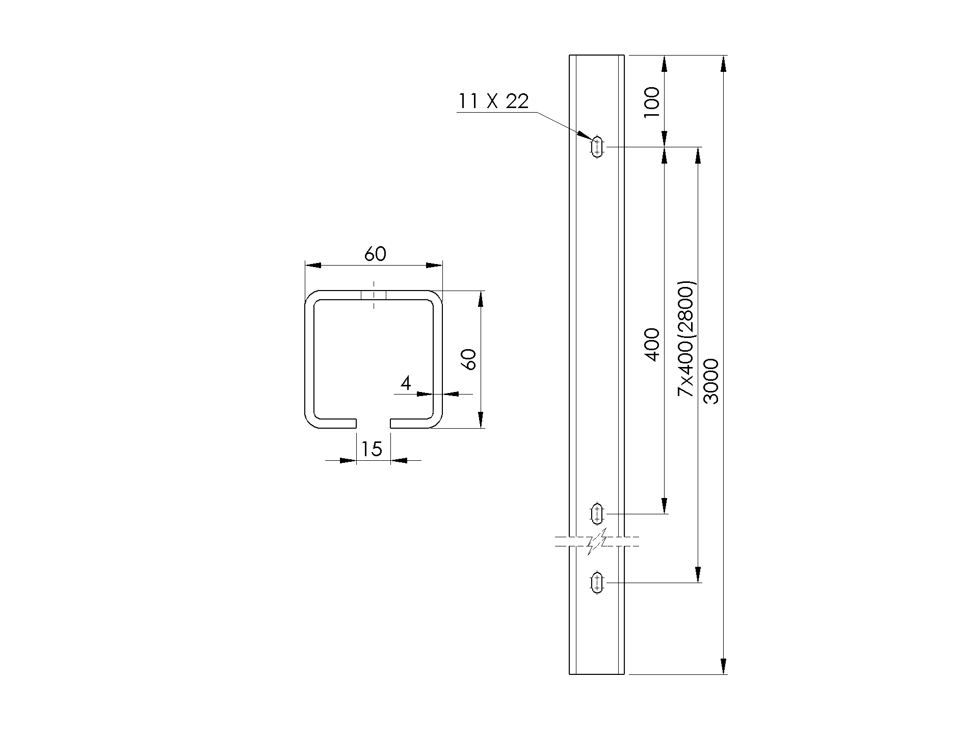 Guide profile with holes Zn, 60x60x4mm, L3m
