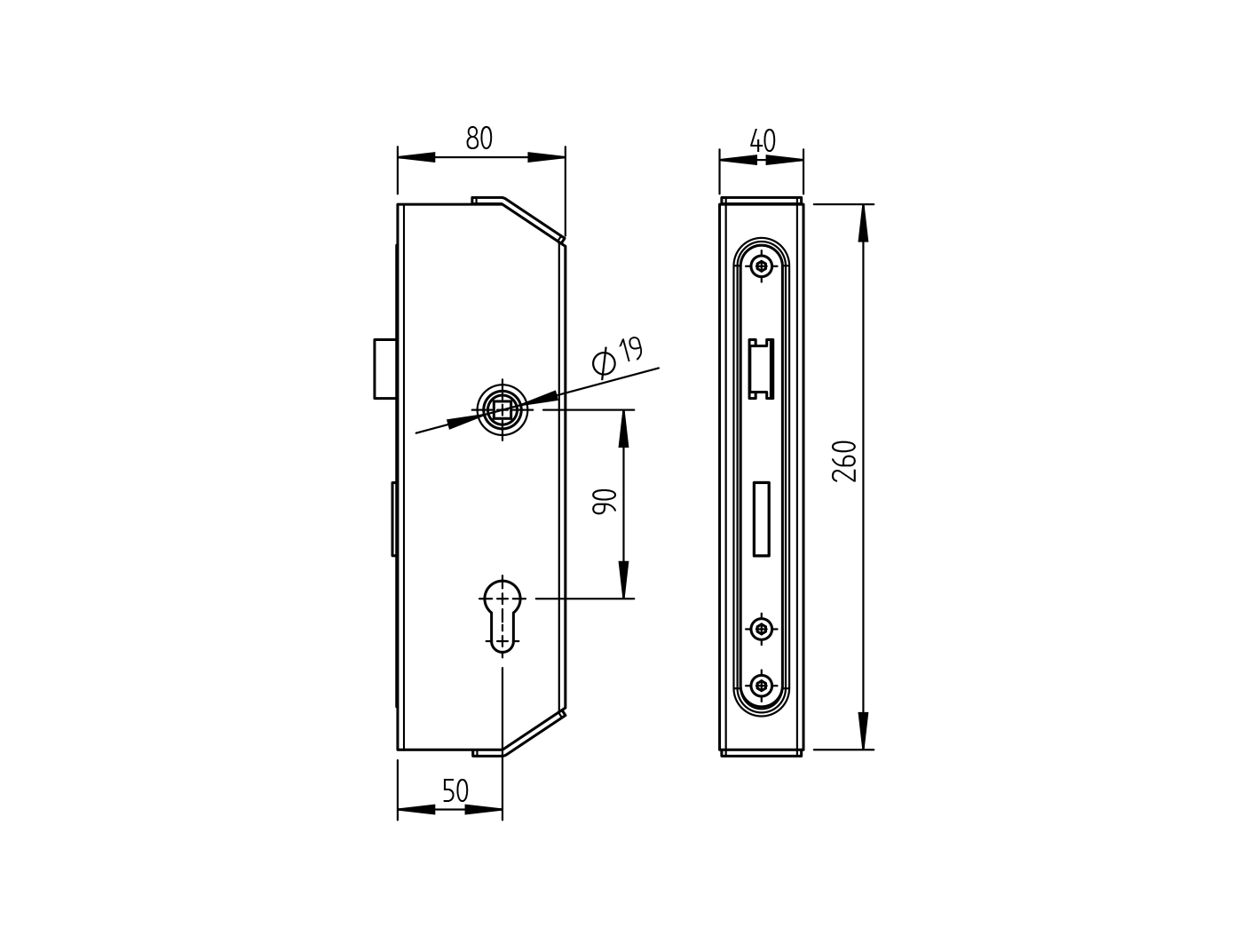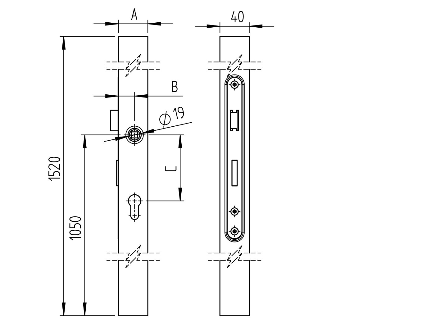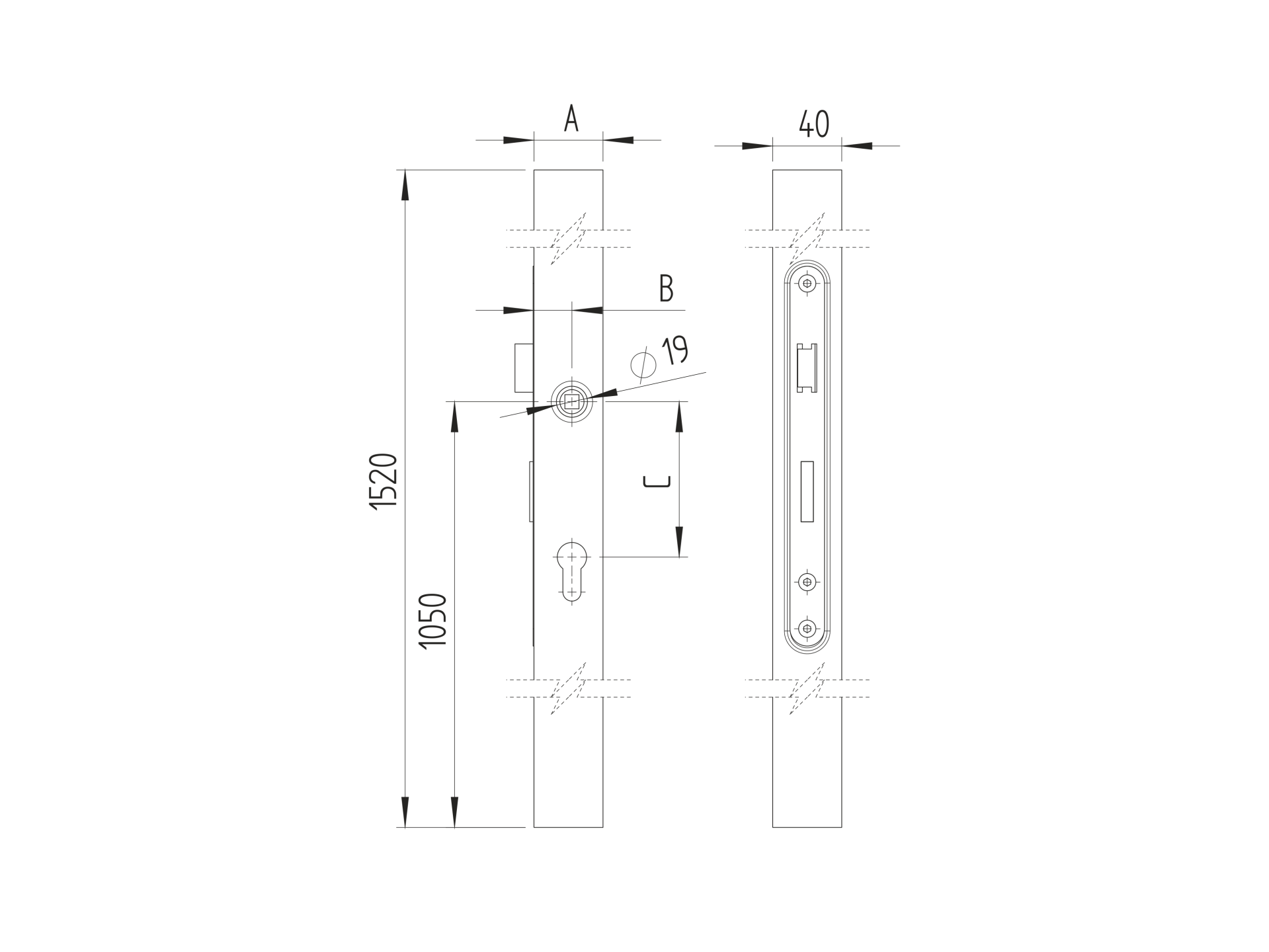 Lock box set without handles JP40x40, L2000 B1/63-40x40x2000