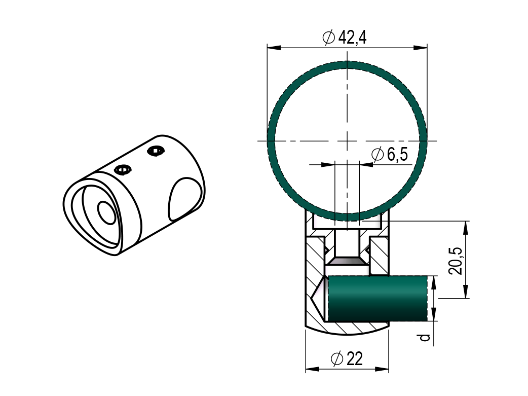 Stainless steel Baluster post AISI304, D42,4/5xd12 A-VR110-5D12