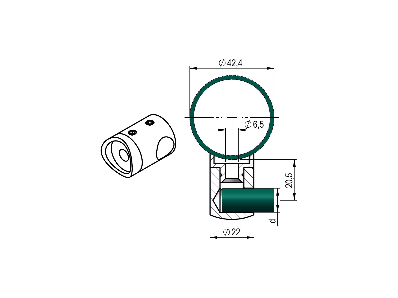 Stainless steel crossbar holder left, for 10mm rod. Suitable for D42,4mm tube. Material AISI304, K320