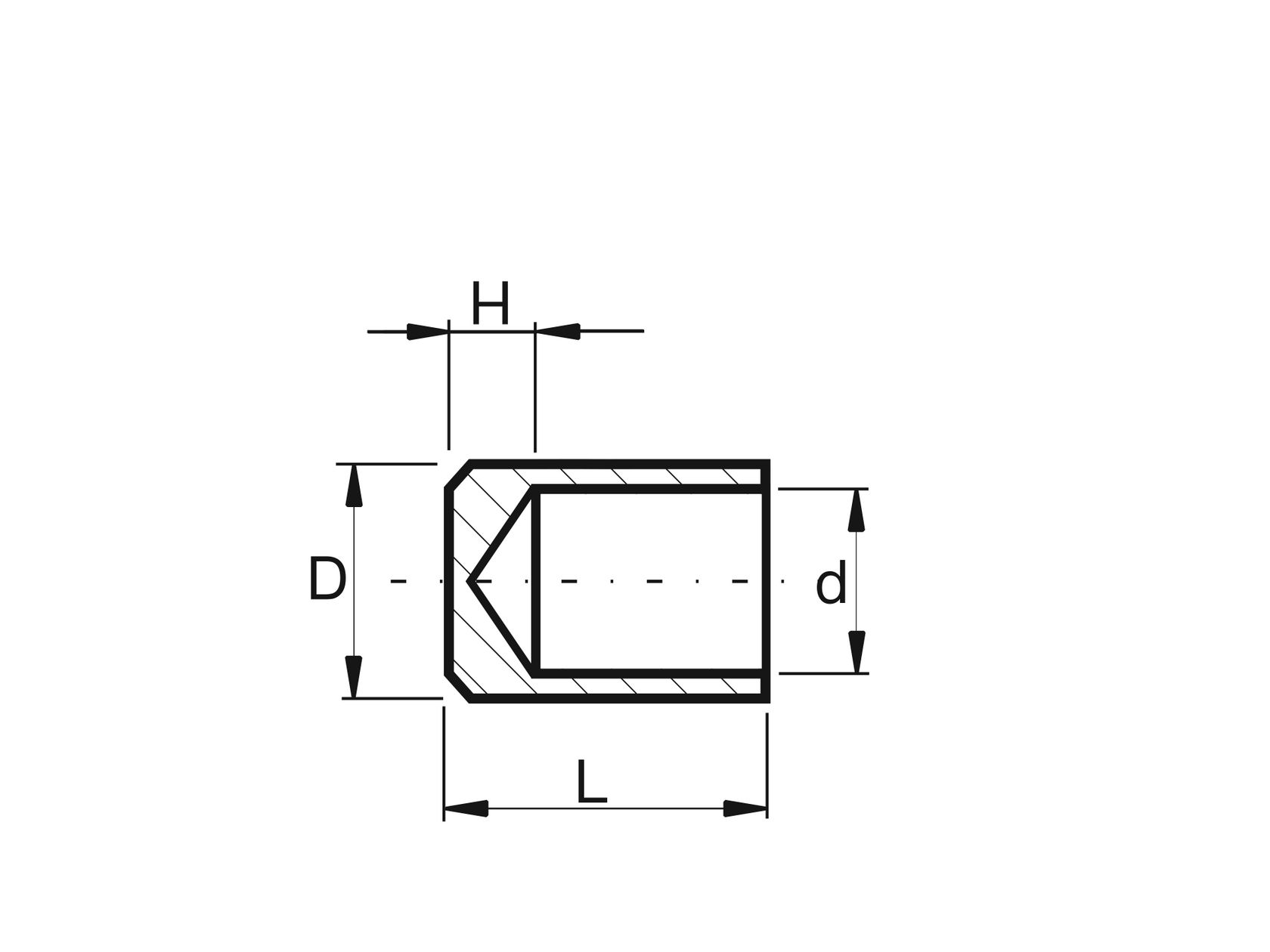 Cylindrical end cap filling, glued joint.