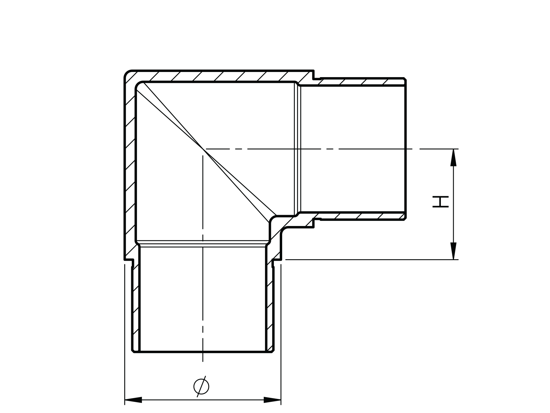 Flush elbow 90° for round bar