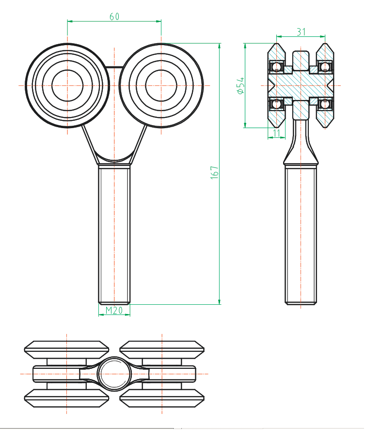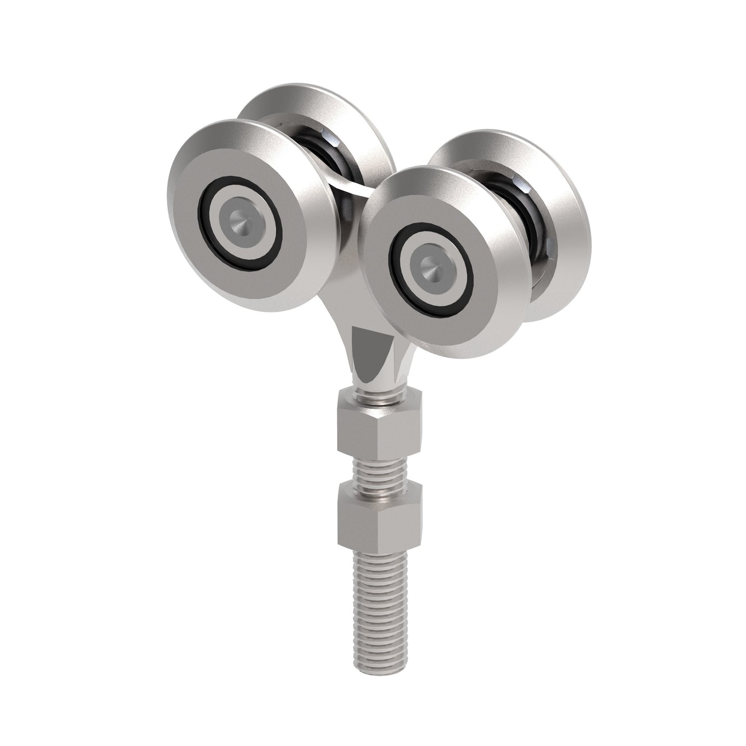 Four-wheeled trolleys for sliding hanging gates into profile H/18-57x67-Fe, with bearing, galvanized.