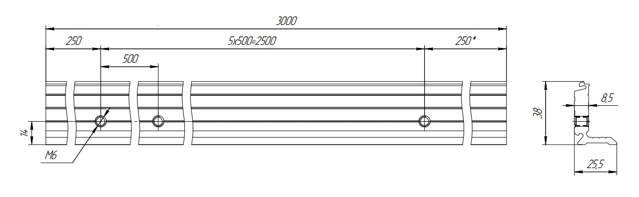 9 pcsMaterialAluminiumSurface finishRawFixed glazing - clamping profile L300cm GS/ZP-002