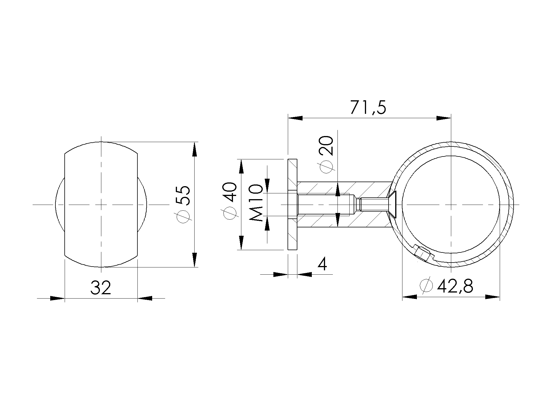 1 pcsMaterialStainless steel AISI 304Surface finishRawL16Handrail bracket A14/0708-base