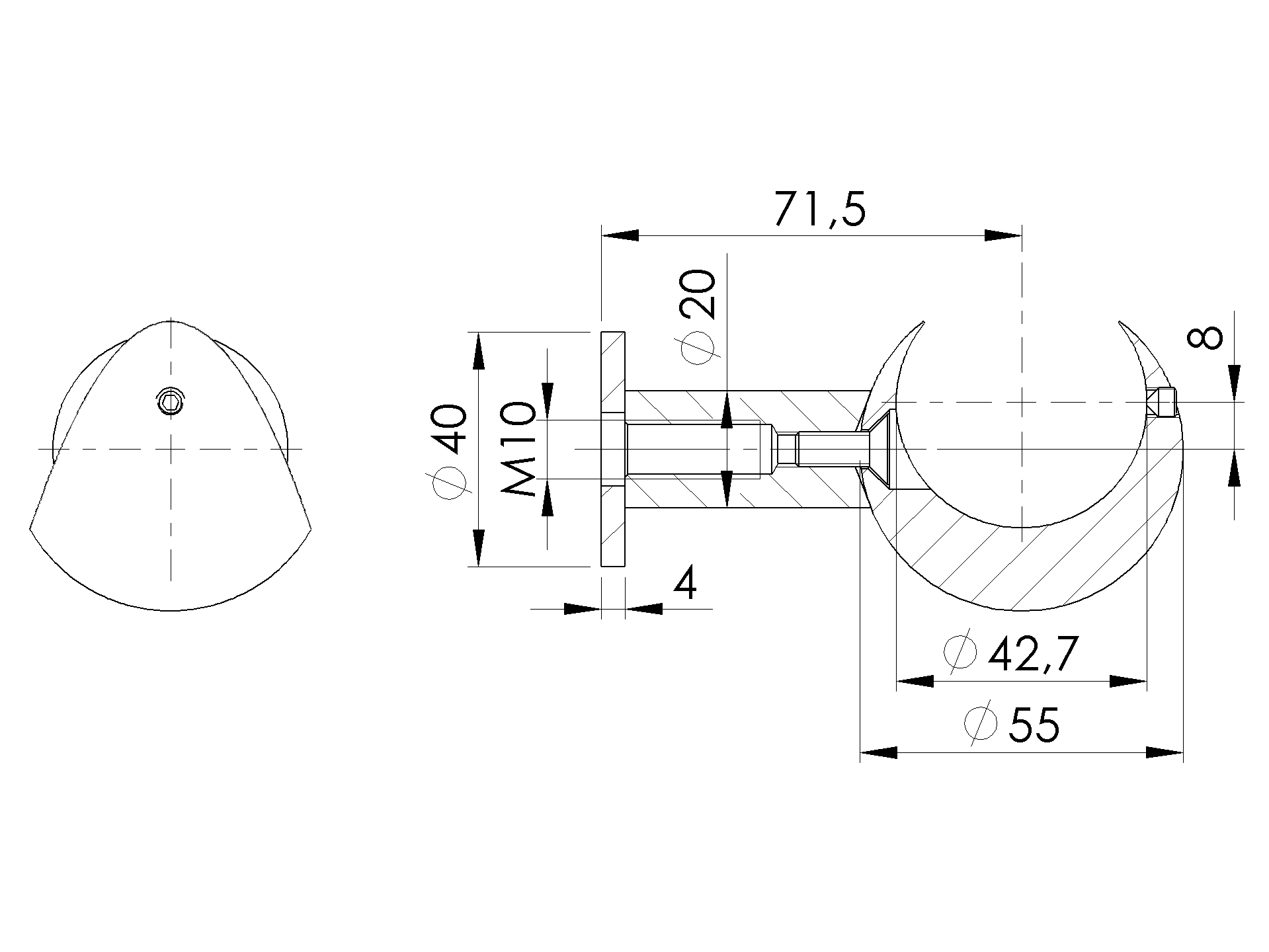 1 pcsMaterialStainless steel AISI 304Surface finishSatinedPostD42,4Required productsRing wall handraill supper A/014