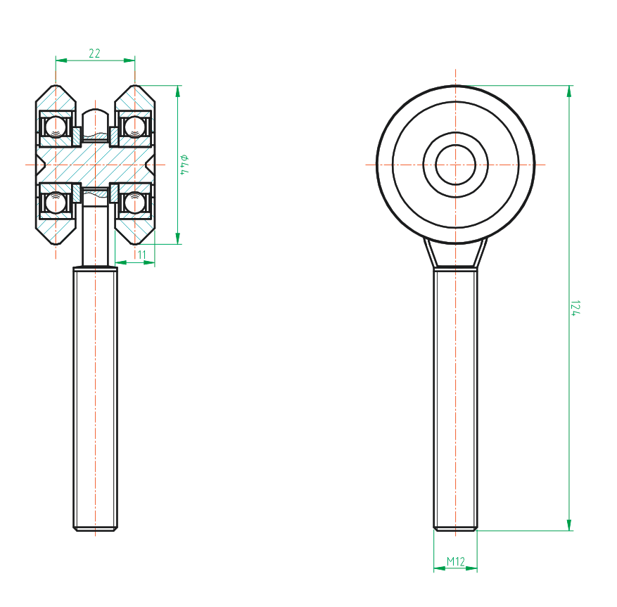 The dimensional series of the guide ensures compatibility of the guide profile, wheels, and accessories