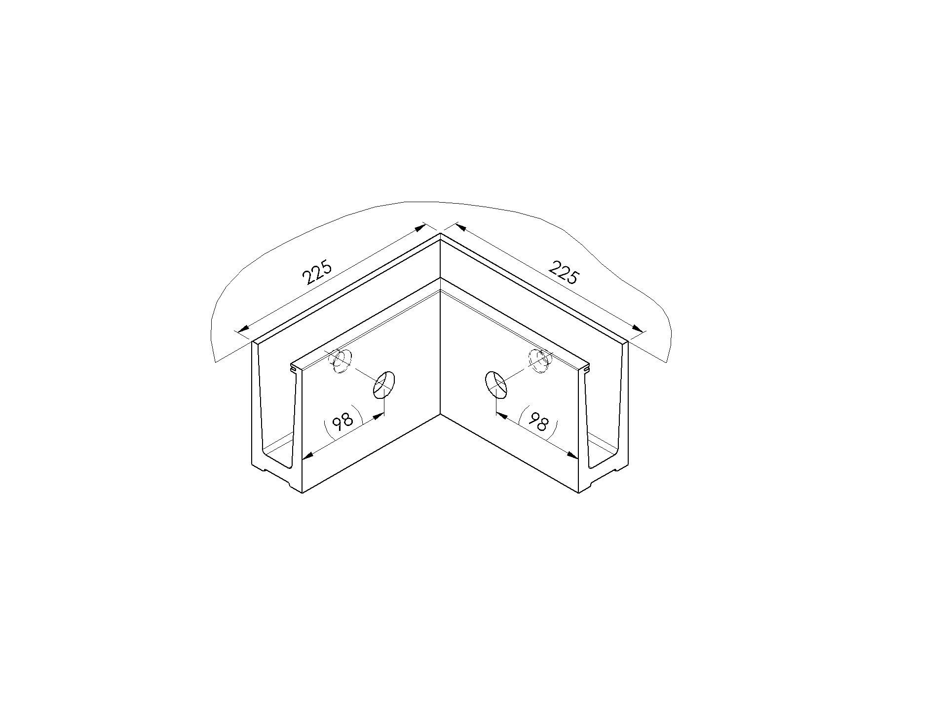 AL. profile, top mount 90° IN corner AL/ELOX/Sati AL/0009-S-E-90-OUT