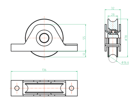 Wheel for sliding gates with U groove INOX, D80 H8/31U-80-R10