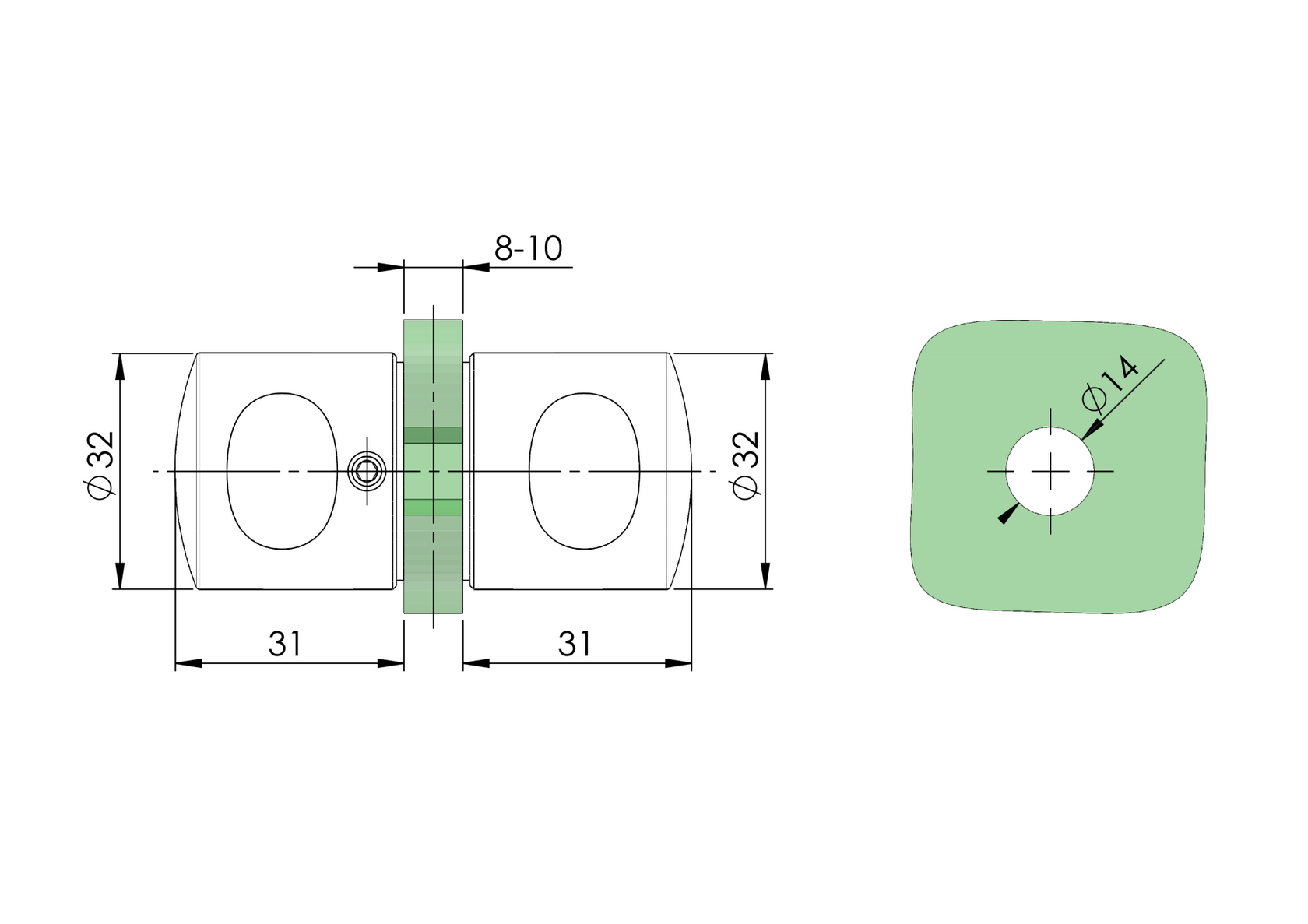 Material: Stainless steel AISI 304, Surface finish: Satined, D: 32, Glass hole: Yes