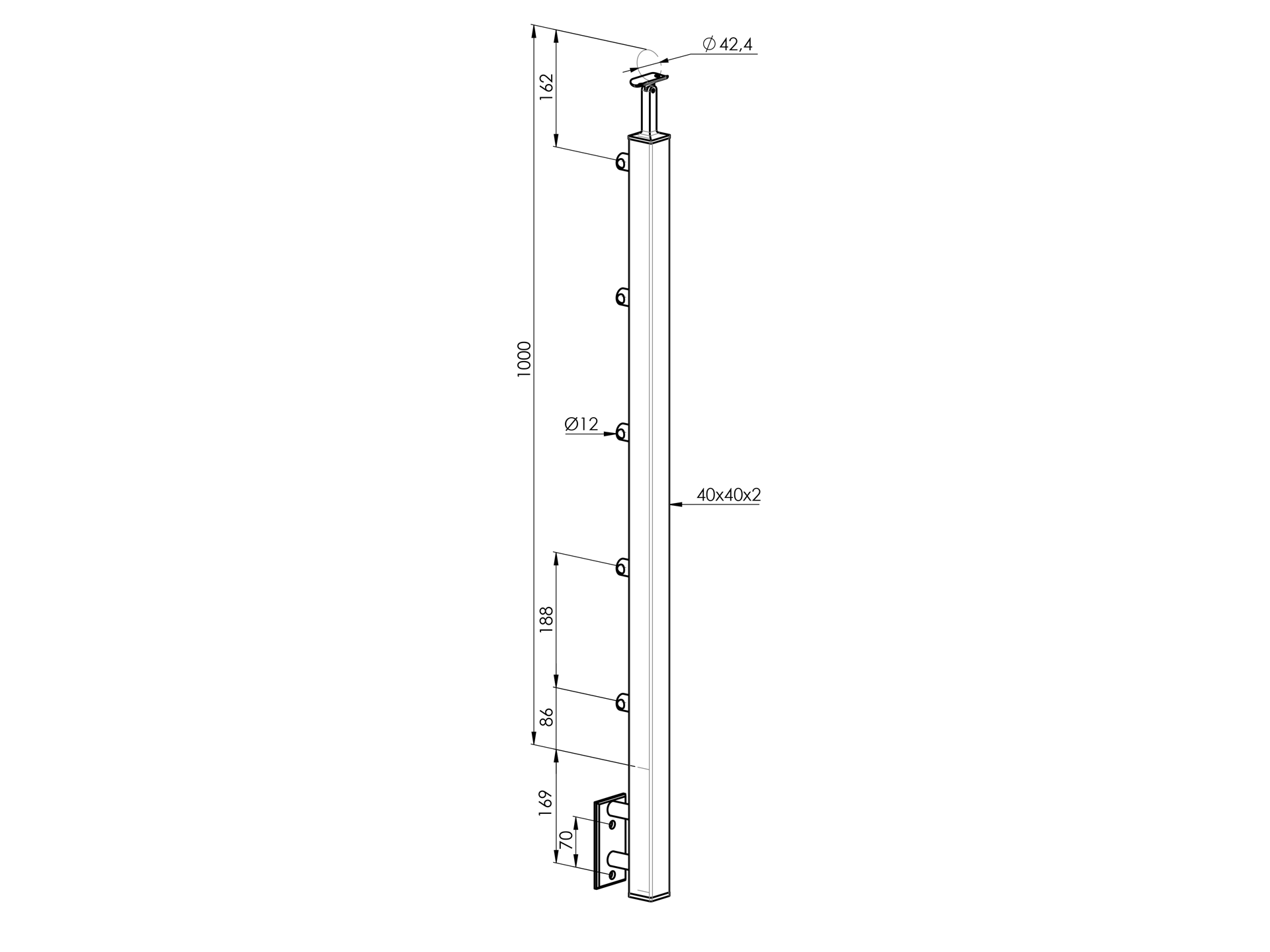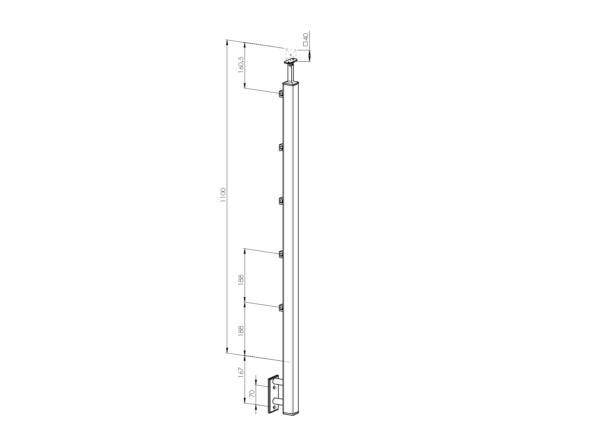1 pcsMaterialStainless steel AISI 304Surface finishSatinedPost40x40x2Required productsSide anchoring A6/005-4