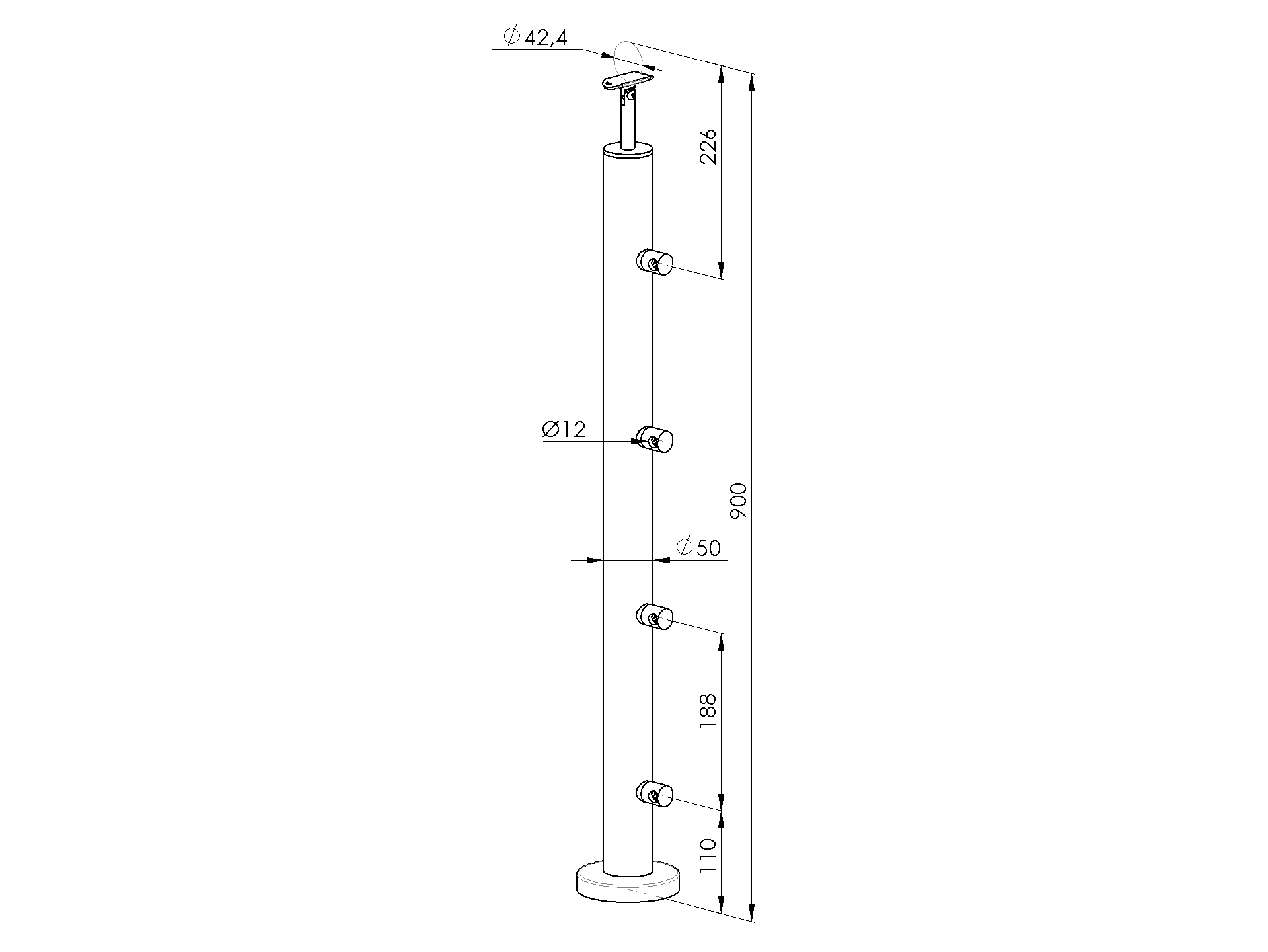 Beech pole D50 AISI304+BEECH, D50/4xd12mm, H900mm WB-VR90-4D12