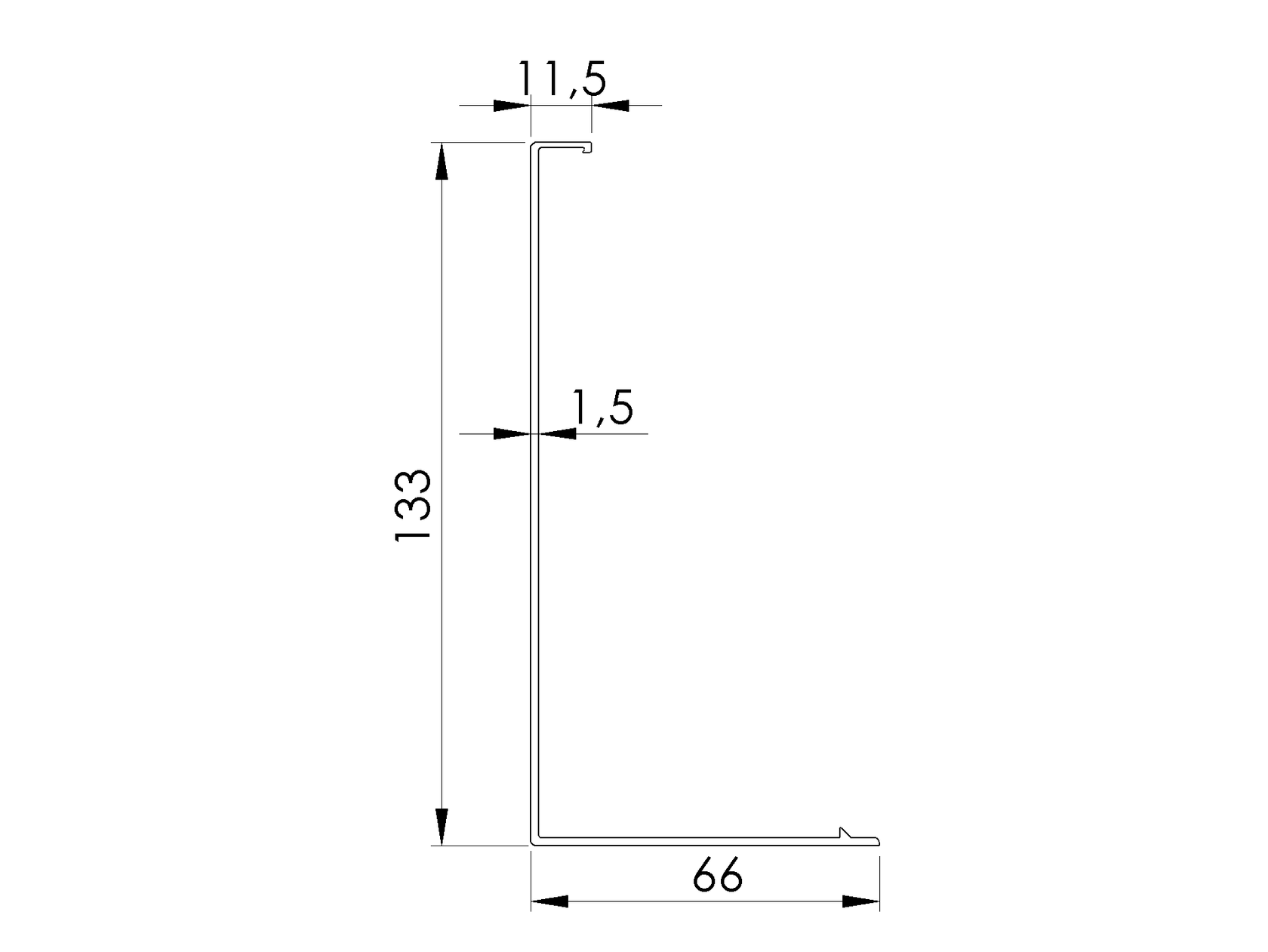 Krycia lišta pre bočný dutý profil AL/0005-UNO