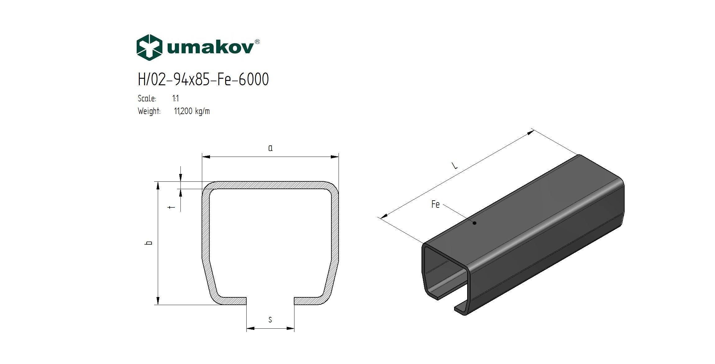 Material: Steel, Surface finish: Galvanized, Mark: Umakov, L: 6000, a: 94, b: 85, s: 33, t: 5