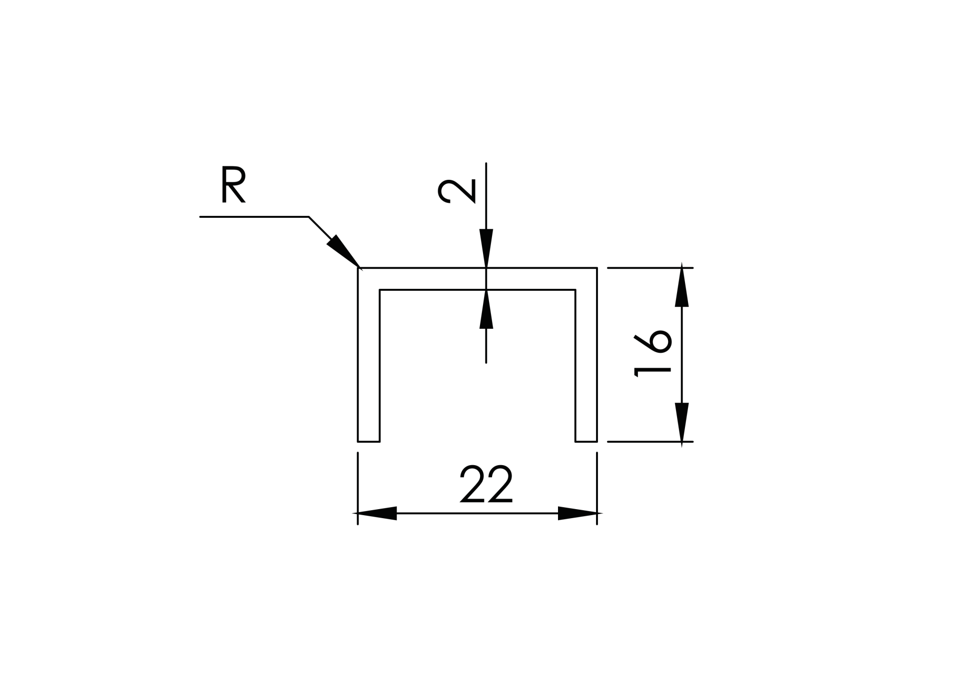 Material: Aluminium, Surface finish: Satin-ELOX, Glass t: 16,0-17,5, L: 6000, Anchoring: Glass, D: 22, H: 16, R: 1, t: 2, LED: No