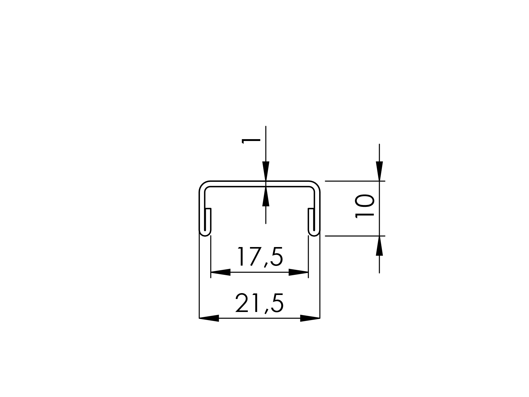Material: Aluminium, Surface finish: Satin-ELOX, Glass t: 16,0-17,5, L: 3000, Anchoring: Glass, D: 22, H: 16, R: 1, t: 2, LED: No