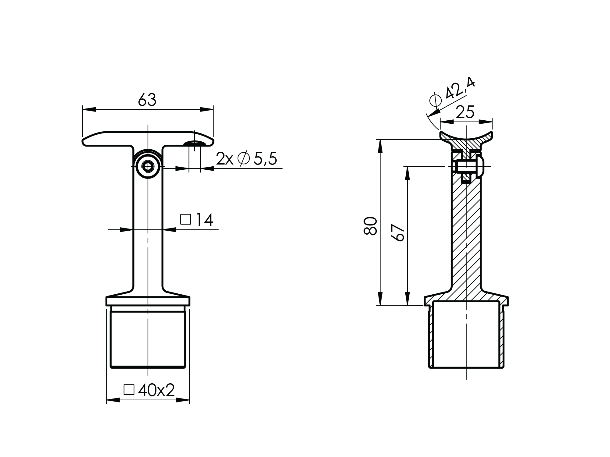 Stainless steel pole, BK-straight AISI304, D40x40 AJP-VER-BR100