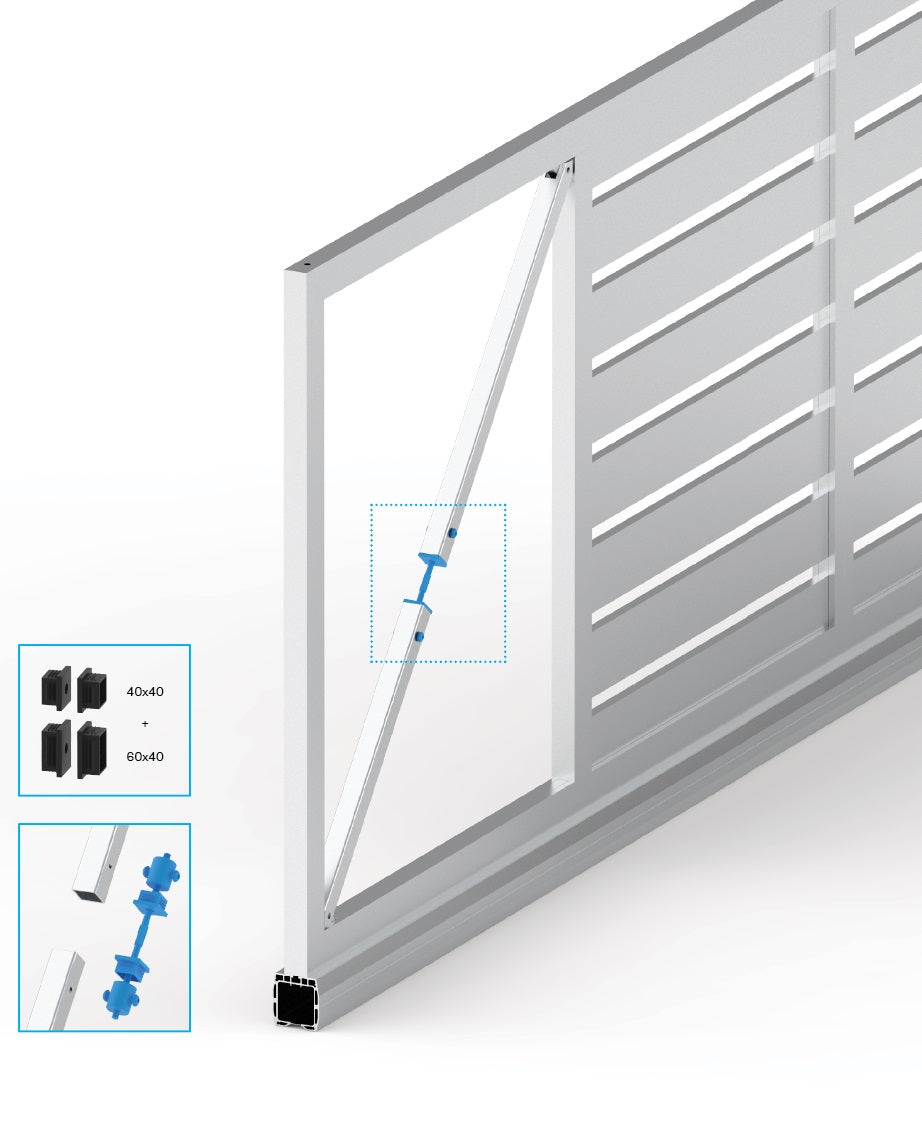 Tensioner for a self-supporting gate for profile 40x40, 60x40