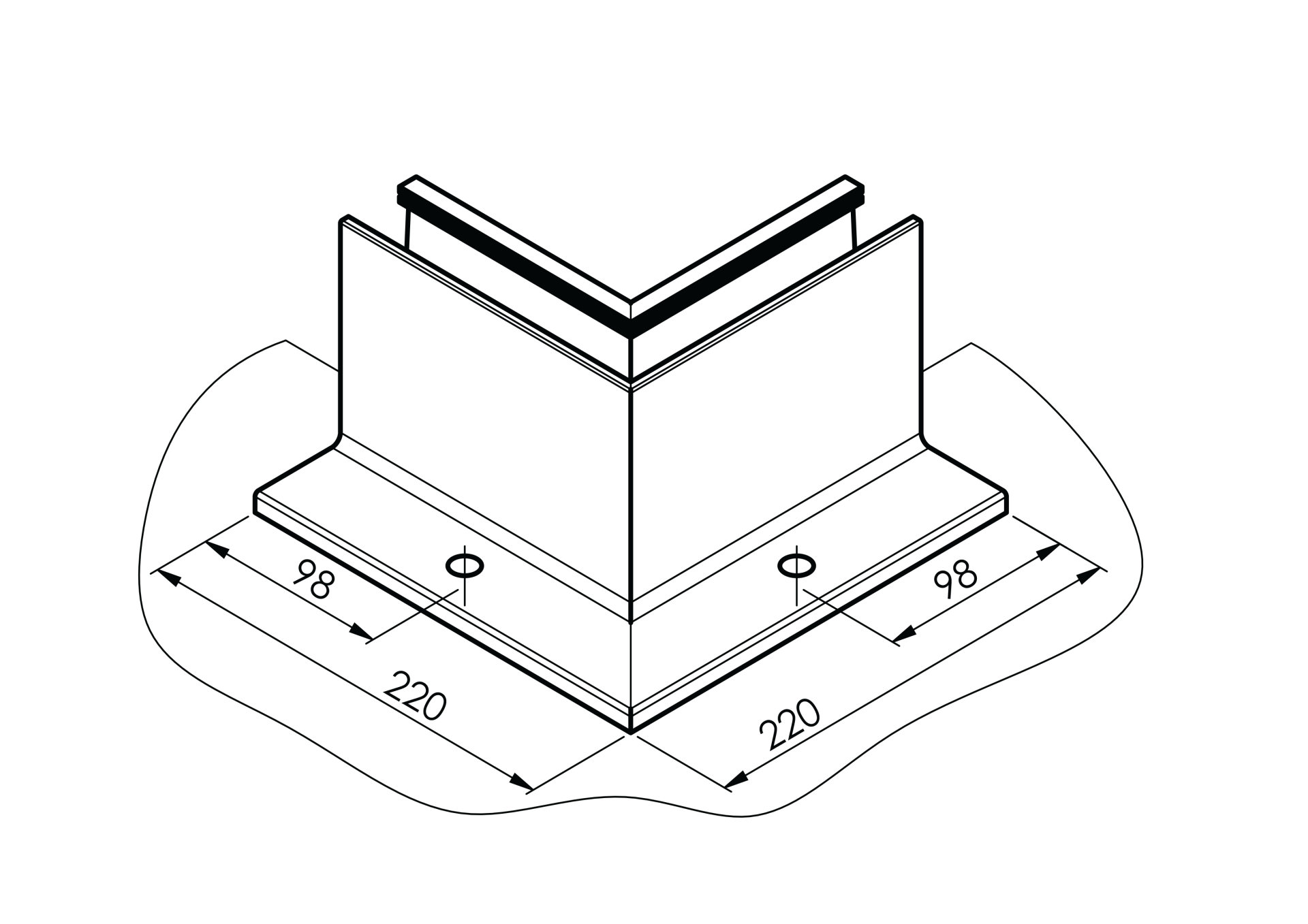 AL anchoring profile for glass, top mounting, surface brushed and anodized, without accessories.