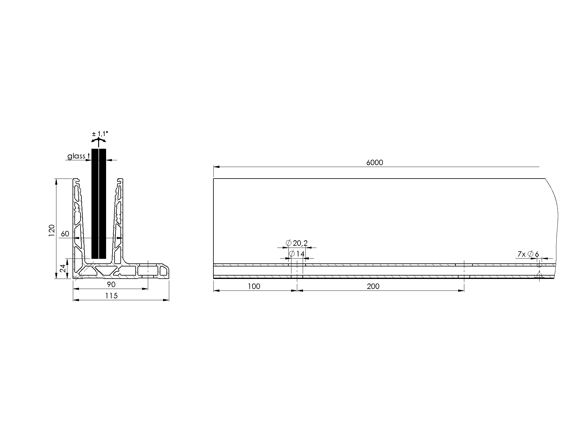 Top mount - glass AL/0006-UNO-6000-S-E