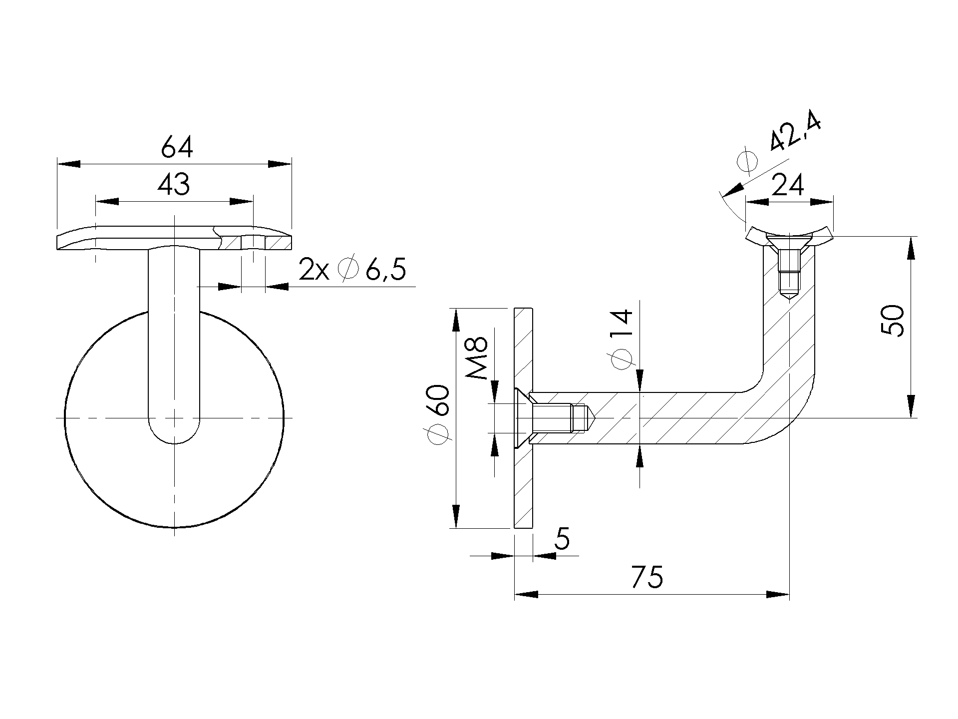 Material: Stainless steel AISI 304, Surface finish: Satined, Handrail: D42,4, Anchoring: Wall