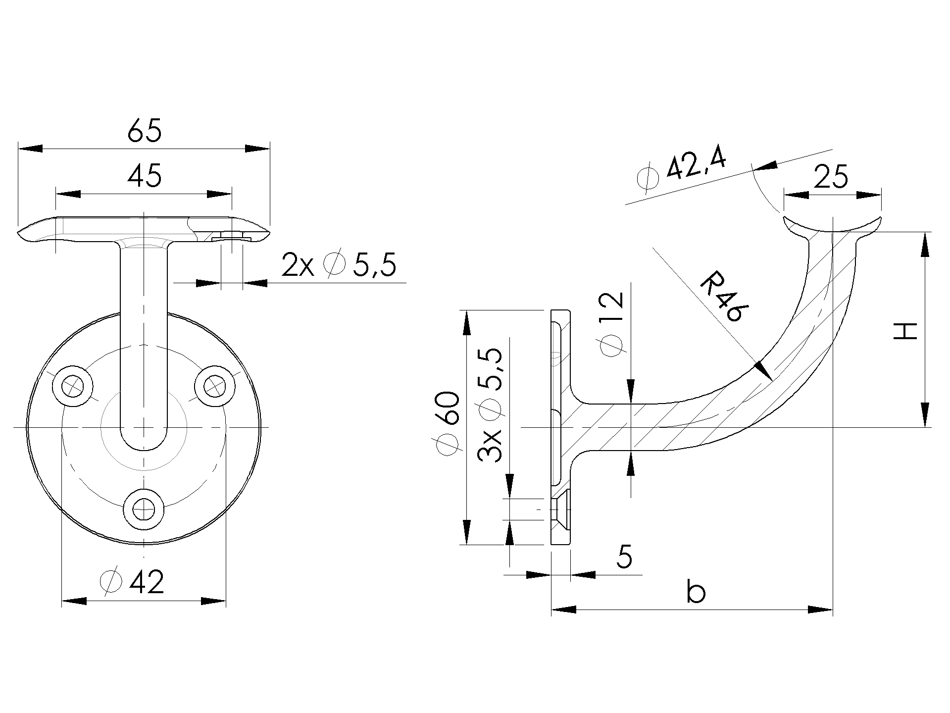 Handrail AISI304, D42,4/L6000mm A/M-6000