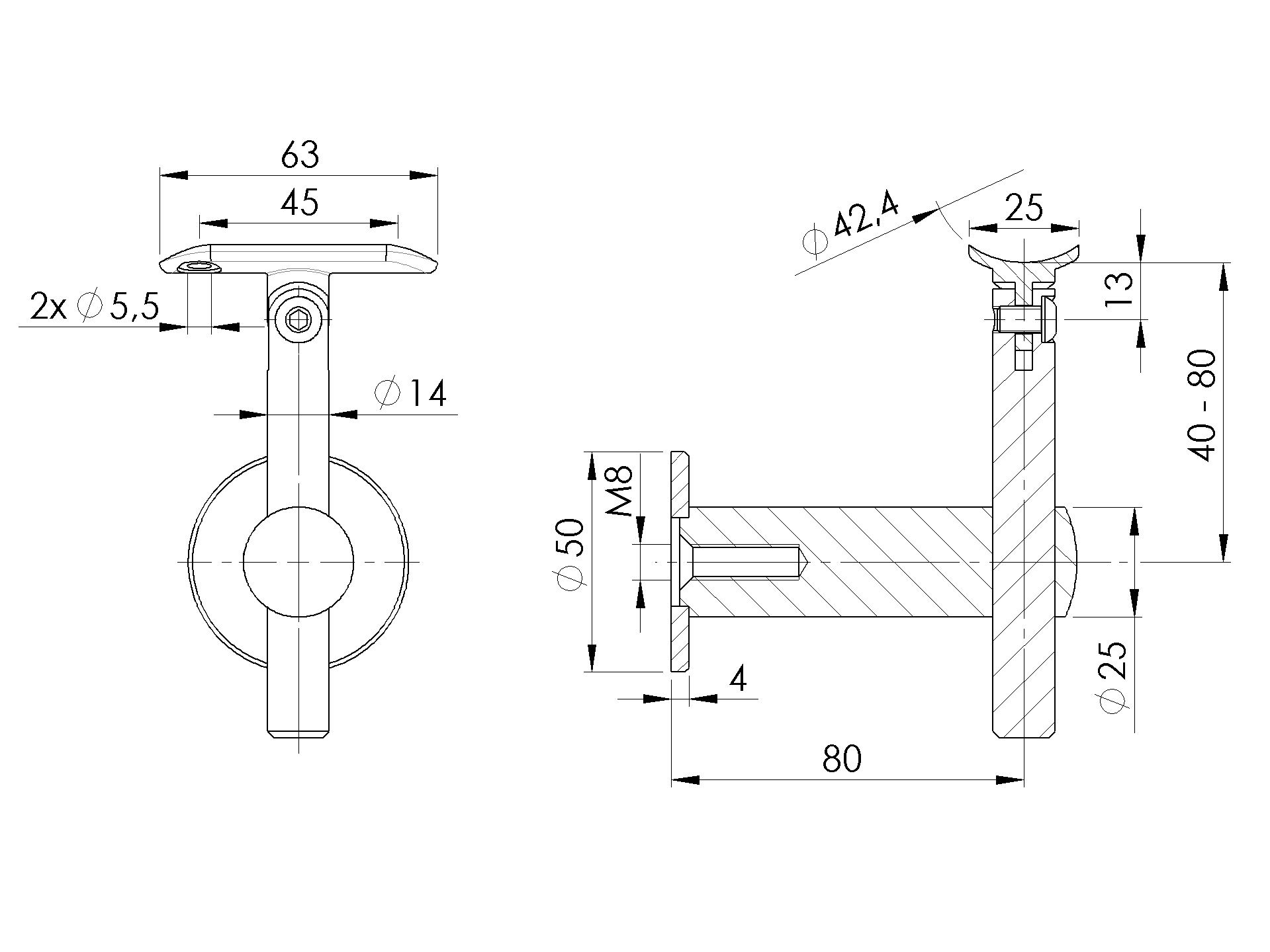 Mounting kit for stainless steel railings Q/INOX-INSTALL-SET
