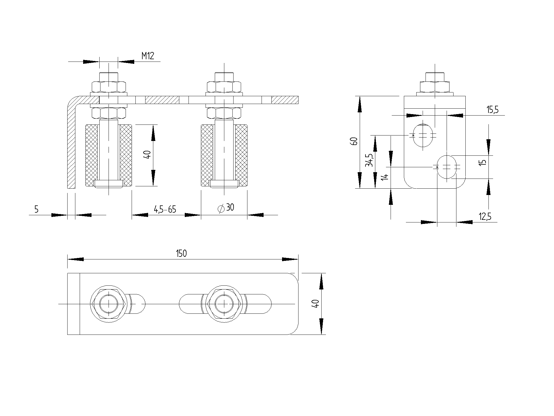 Wheel with bracket, Zn, anthracite H/53-2-R7016