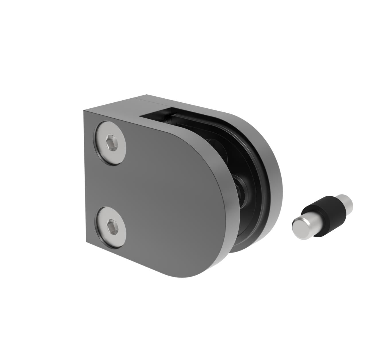 Držiak sklenenej (plechovej, tabuľovej) výplne je konštrukčný prvok používaný na upevnenie a stabilizáciu sklenenej alebo plechovej výplne v rôznych konštrukciách, ako sú zábradlia, balkóny alebo schodiská. Tento držiak zaisťuje pevné a bezpečné prichytenie výplne, čím zvyšuje celkovú stabilitu a bezpečnosť konštrukcie. Sú súčasťou moderných architektonických riešení, ktoré kombinujú funkčnosť, bezpečnosť a estetický vzhľad. Pri výbere držiaka je dôležité zvážiť jeho materiál, dizajn, funkčnosť a kompatibilitu s konkrétnou výplňou a celkovou konštrukciou. Držanie vyplne - poistenie voči vypadnutiu je dosiahnuté pomocou zverného spoja (doporučené použitie pri vrchnom kotveni) alebo zverného spoja a kolika (doporučené použitie pre bočne kotvenie). Držiak neobsahuje tesnenie (nutnost dokupit 2ks tesneni podla hrubky skla) a krytky pre skrutky.