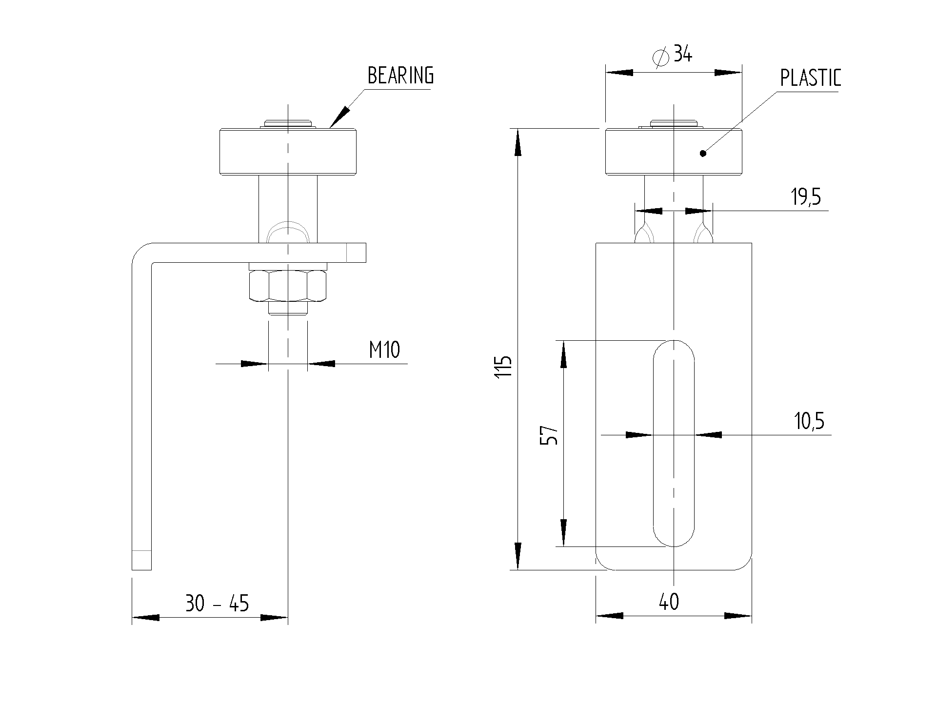 Vedenie spodné - ECO-NYLON, profile 60x60mm SV-60x60-ECO-NYLON