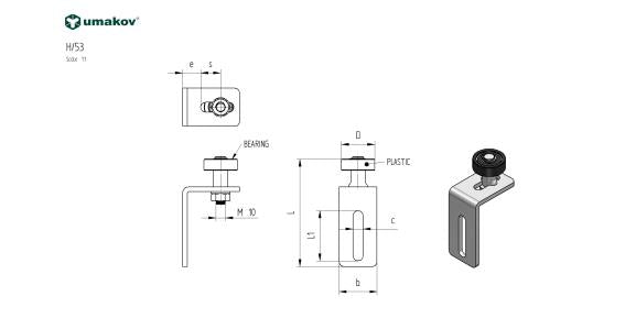 Koliesko nylonové s konzolou a ložiskom, AISI304 H8/53
