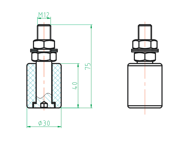 Koliesko-nylonové Zn, D30mm, M12, black H/04-30-B